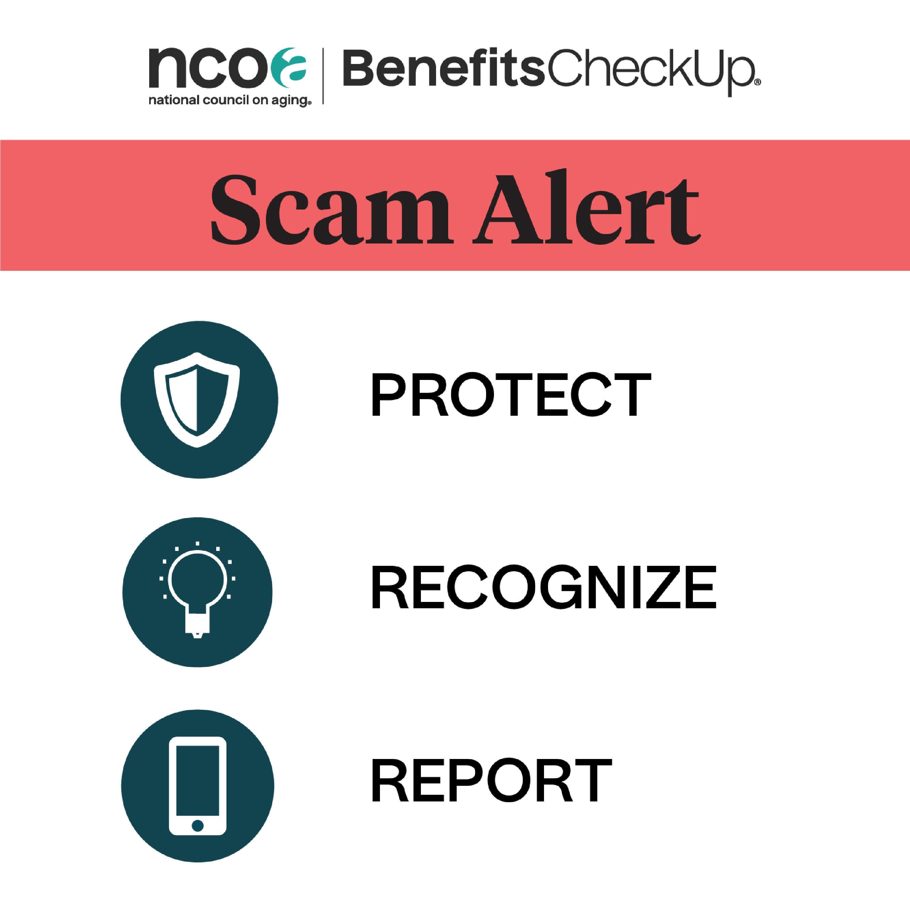 Important: NCOA was alerted to a scam involving unsolicited calls and text messages from someone claiming to be a representative from BenefitsCheckUp. This person might ask you to send them gift cards in exchange for enrollment in benefits programs that help pay for groceries, utilities, and other expenses.